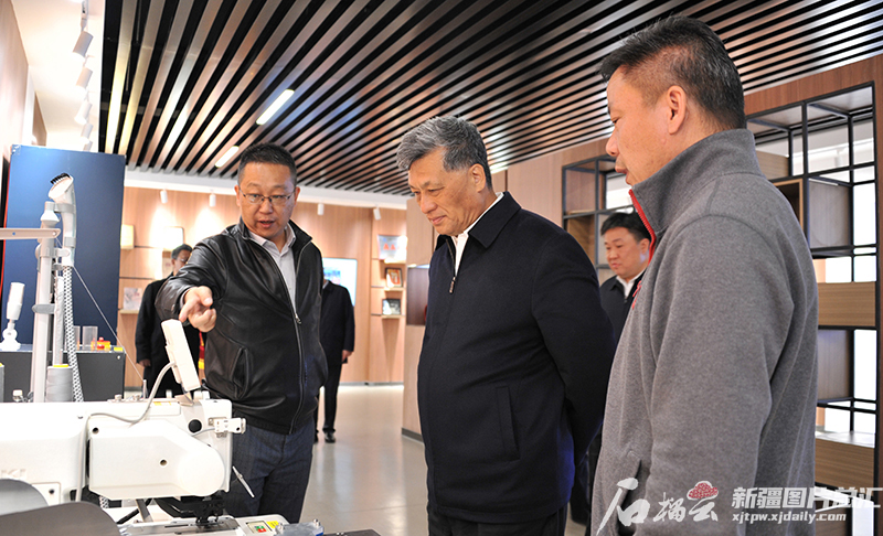 马兴瑞来到昌吉溢达纺织有限公司,走进生产车间察看企业生产经营、安全生产情况,了解产能产量、技术工艺、市场销量,强调要抓住新疆建设棉花和纺织服装产业集群机遇,持续加强产品、技术、模式创新,推动企业提质增效和转型升级,积极开拓国内国际市场,努力在区域高质量发展中发挥更大作用、实现更大发展。