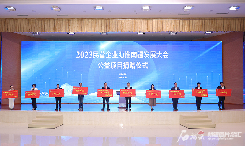天山网-新疆日报讯(记者王兴瑞报道)2023民营企业助推南疆发展大会5月31日在喀什召开,深入贯彻党的二十大精神,推动主题教育走深走实,深入学习贯彻习近平总书记关于高质量发展的重要论述,完整准确贯彻新时代党的治疆方略,进一步引导动员广大民营企业积极参与巩固拓展脱贫攻坚成果同乡村振兴有效衔接,强化产业帮扶、劳务协作、人才支援、资金支持,助推南疆经济社会高质量发展。自治区党委书记马兴瑞致辞,全国政协副主席、全国工商联主席高云龙讲话。