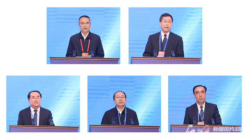 会上,喀什地区、巴音郭楞蒙古自治州、阿克苏地区、克孜勒苏柯尔克孜自治州、和田地区主要负责同志作推介发言(从左至右、从上至下)。天山网-新疆日报记者 崔志坚摄