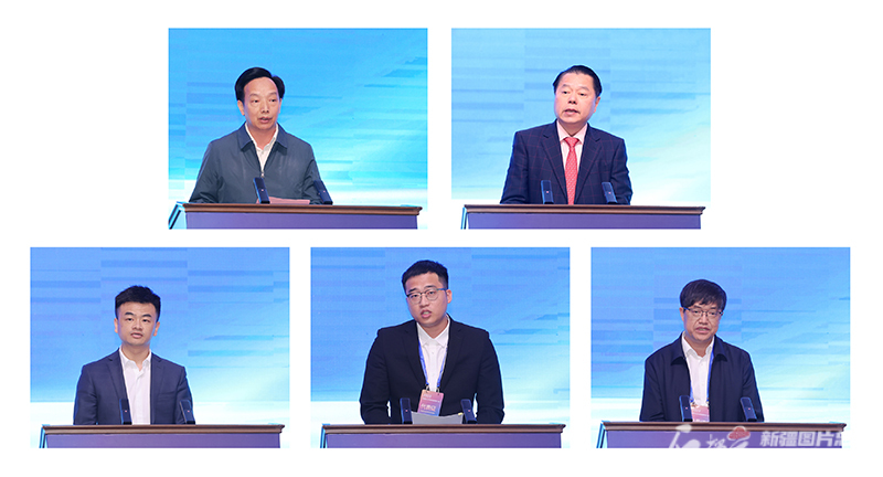 会上,广东恒兴集团、月星集团、喀什奥都糖业、新疆美旭纺织、新疆紫金锌业负责人围绕促进南疆发展交流发言、建言献策(从左至右、从上至下)。天山网-新疆日报记者 崔志坚摄