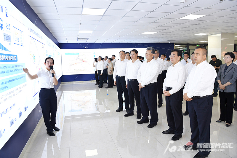 8月4日至7日,江苏省党政代表团来疆考察对接对口支援工作。这是8月6日,自治区党委书记、新疆生产建设兵团党委第一书记、第一政委马兴瑞,江苏省委书记、省人大常委会主任信长星,江苏省委副书记、省长许昆林,自治区党委副书记、自治区主席艾尔肯·吐尼亚孜等,在乌鲁木齐国际陆港区了解建设运营情况。 天山网-新疆日报记者卢民一摄