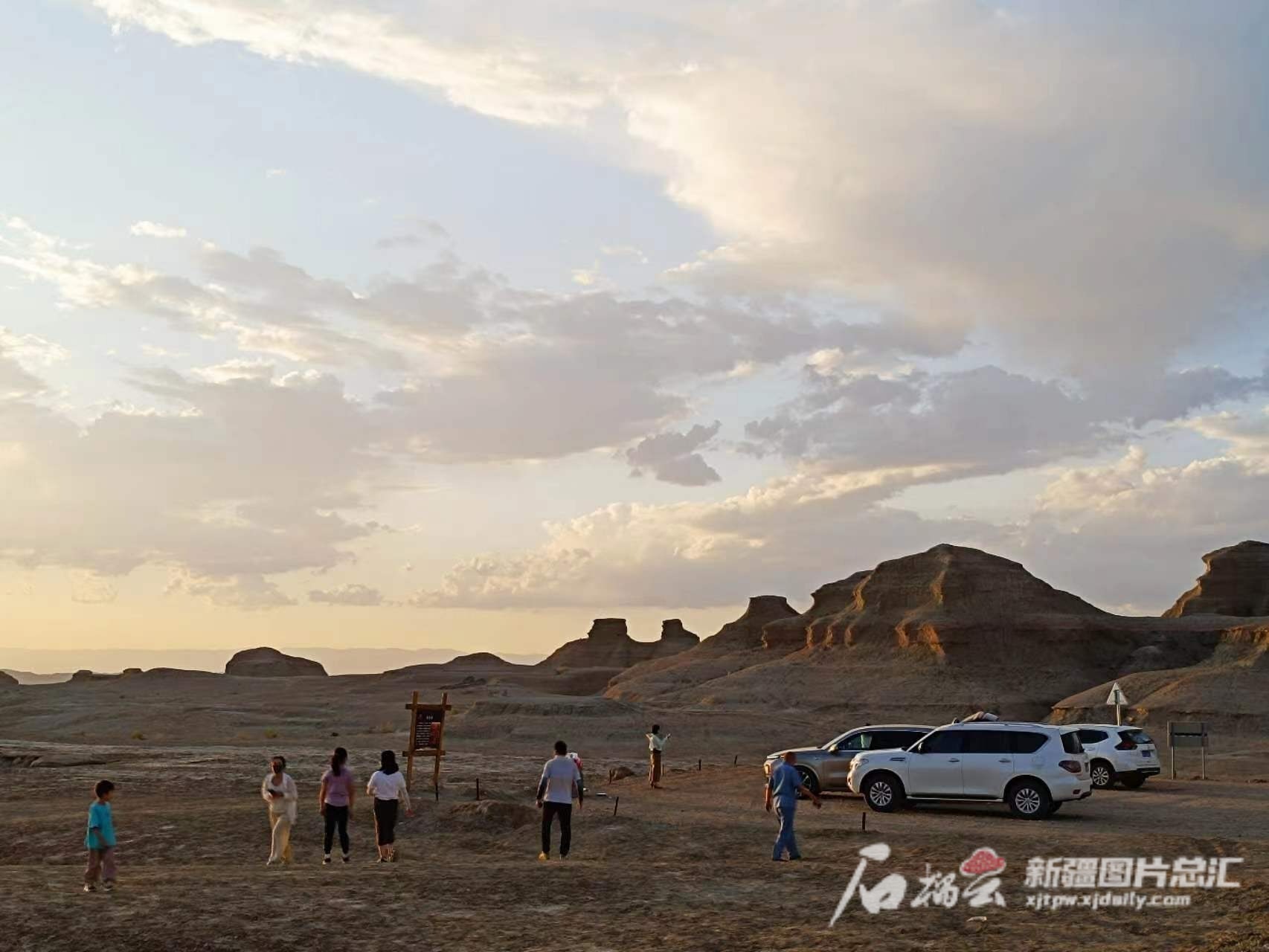7月17日傍晚,游客在克拉玛依世界魔鬼城景区观赏落日。天山网-新疆日报记者 任江摄