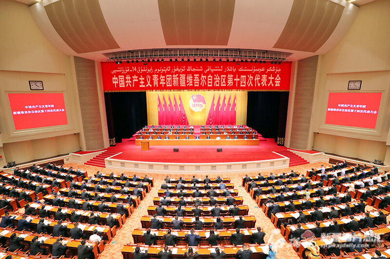 8月15日,中国共产主义青年团新疆维吾尔自治区第十四次代表大会在新疆人民会堂开幕。天山网-新疆日报记者 崔志坚摄