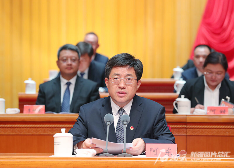 阿东代表共青团中央,对大会召开表示热烈祝贺,并充分肯定了新疆共青团5年来取得的新进展新成绩,希望新疆各级团组织在自治区党委领导下,深入学习贯彻习近平新时代中国特色社会主义思想和党的二十大精神,认真学习宣传贯彻习近平总书记在同团中央新一届领导班子集体谈话时的重要讲话精神,更加深化对“两个确立”的政治认同、思想认同、理论认同、情感认同,不断增强做到“两个维护”的内在自觉,动员引领各族团员青年为强国建设、民族复兴伟业团结奋斗、挺膺担当,奋力谱写新时代共青团和青年工作的壮丽青春之歌。他指出,新疆共青团要立足“政治学校”功能定位,抓好面向广大团员和青年的主题教育,切实加强对各族团员青年的政治引领,不断铸牢中华民族共同体意识。要担当“先锋力量”职责使命,完整准确贯彻新时代党的治疆方略,组织各族团员青年踊跃投身中国式现代化新疆实践。要发挥“桥梁纽带”重要作用,组织实施好西部计划等工作项目,热忱服务新疆各族青少年健康成长、全面发展。要锚定“先进组织”建设目标,持续推动各级团组织进行全方位、高标准锻造,以实打实的业绩赢得党的信任、赢得社会尊重、赢得青年口碑。
