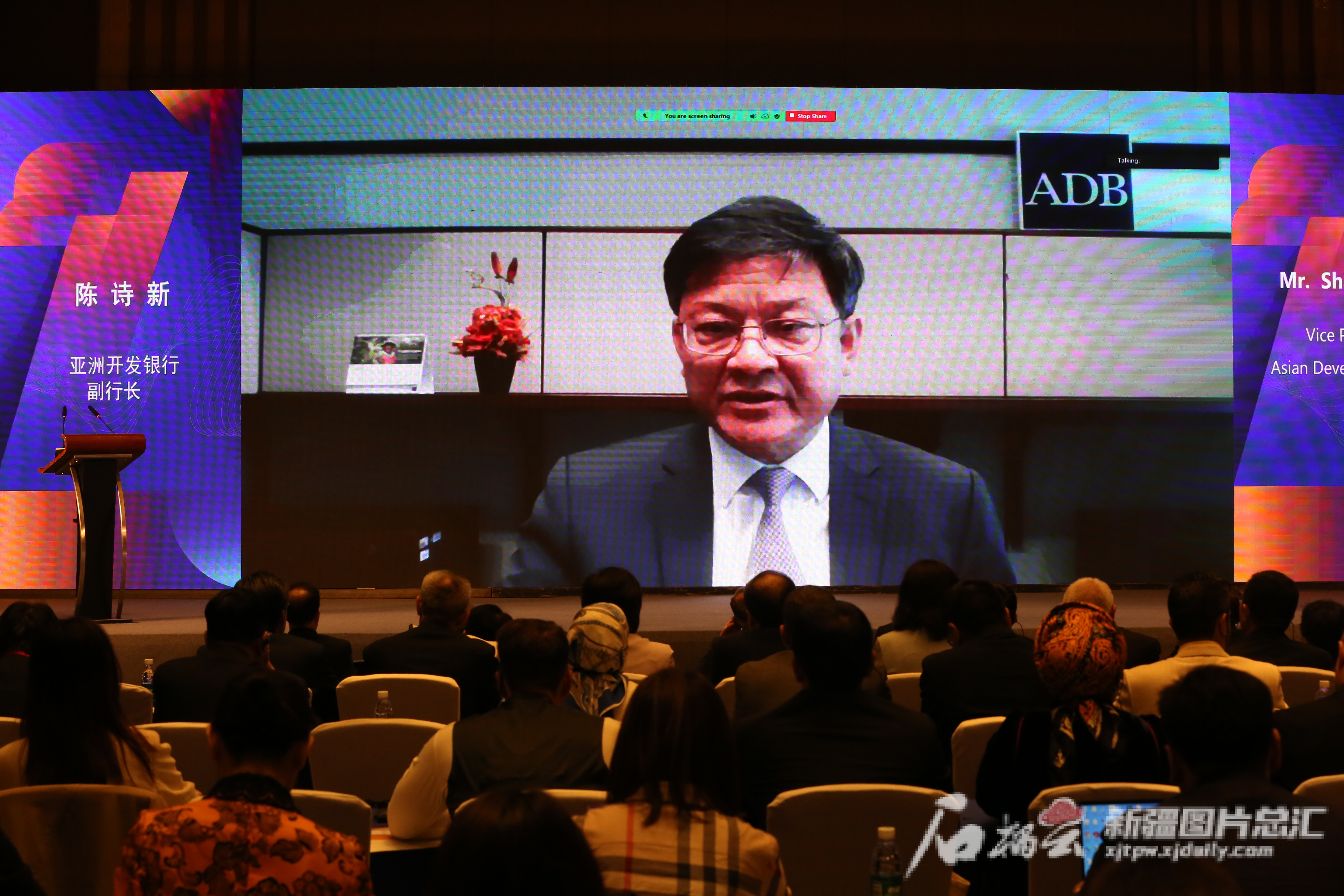 8月16日,在第七届中亚区域经济合作智库发展论坛上,亚洲开发银行副行长陈诗新通过视频发言。