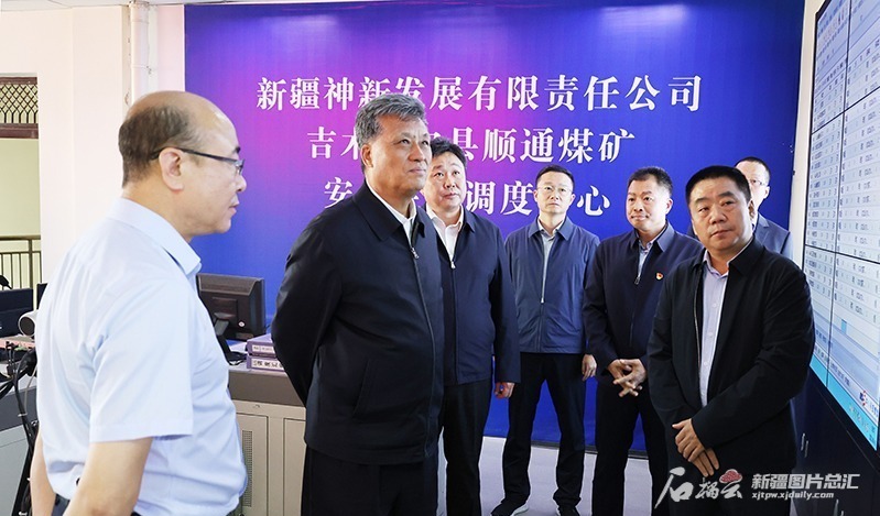 马兴瑞来到吉木萨尔县顺通煤矿,走进调度中心了解生产运营、产能产量、煤炭销售情况,叮嘱有关负责同志积极适应新疆现代化煤炭产业发展需求,因地制宜推动资源整合优化、产能有效提升,不断提高新疆优质煤炭资源规模化、智能化、专业化开发水平。