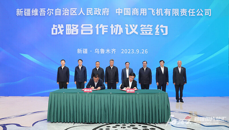 9月26日,新疆维吾尔自治区人民政府与中国商用飞机有限责任公司在乌鲁木齐签署战略合作协议。天山网-新疆日报记者 崔志坚 摄