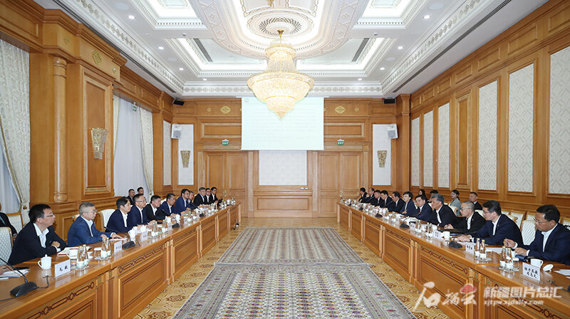 11月15日晚至16日,自治区党委书记马兴瑞率中国新疆友好交流访问团出访土库曼斯坦。这是11月16日,代表团一行与中国石油(土库曼斯坦)阿姆河天然气公司代表就加强能源合作、保障油气稳定运输等作交流。石榴云/新疆日报记者 崔志坚 摄