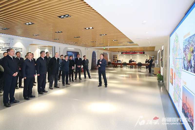 12月9日,马兴瑞、倪岳峰、王正谱、艾尔肯·吐尼亚孜等在雄安规划展示中心,了解新区建设规划全貌。天山网-新疆日报记者 崔志坚摄