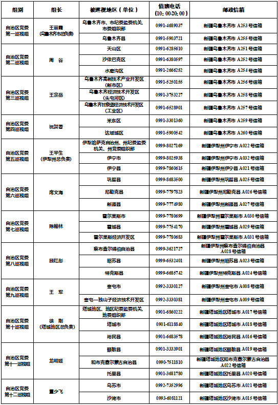根据自治区党委关于巡视工作统一部署,近日,十届自治区党委第四轮巡视完成进驻工作。19个巡视组将对乌鲁木齐、伊犁、塔城、阿勒泰、博州、克拉玛依6个地州市及所辖41个县市区、3个开发区开展常规巡视,同步对6个地州市开展基层组织建设专项巡视,对6个地州市纪委监委机关和党委组织部开展提级巡视。