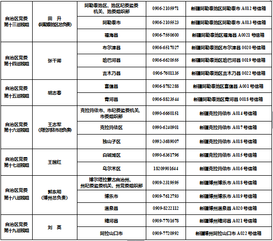 十届自治区党委第四轮巡视进驻一览表