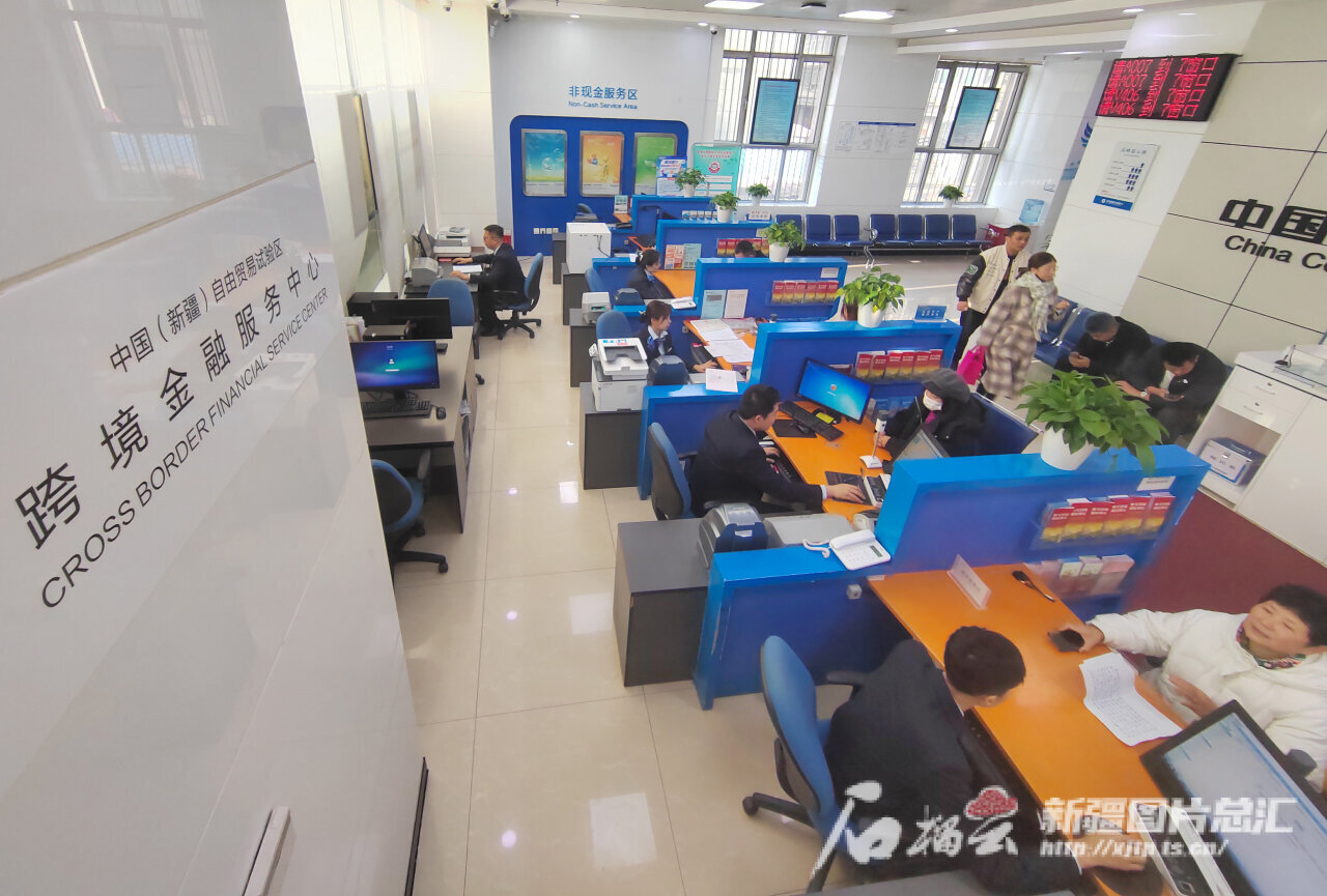 11月22日,工作人员在中国(新疆)自由贸易试验区乌鲁木齐片区高新功能区块中国建设银行金融服务中心为顾客办理业务。邹懿 摄