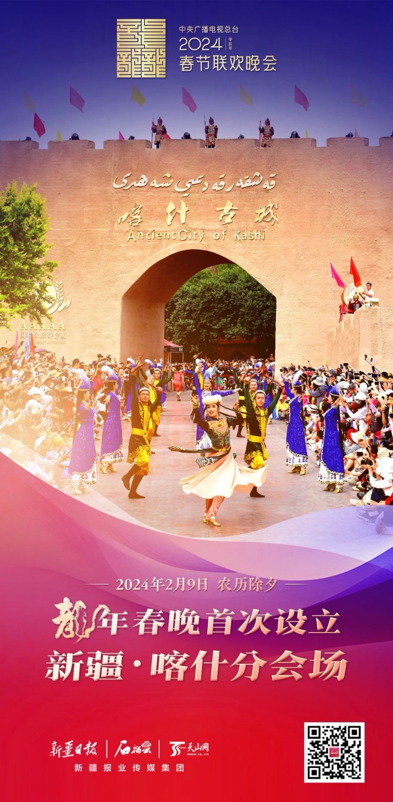 石榴云快讯 1月4日,记者从中央广播电视总台《2024年春节联欢晚会》分会场发布活动获悉:本届春晚将在新疆喀什设立分会场,为历年春晚首次。