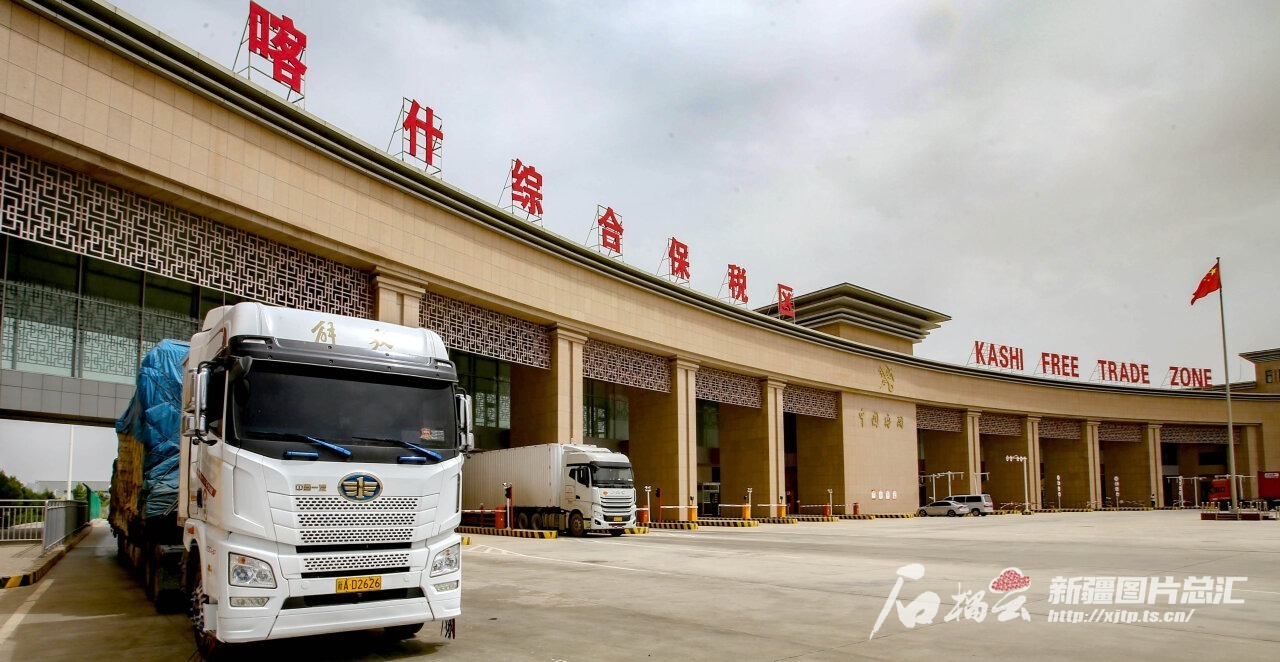 一辆货运汽车从喀什综合保税区驶出(资料图)。天山网-新疆日报记者 蔡增乐摄