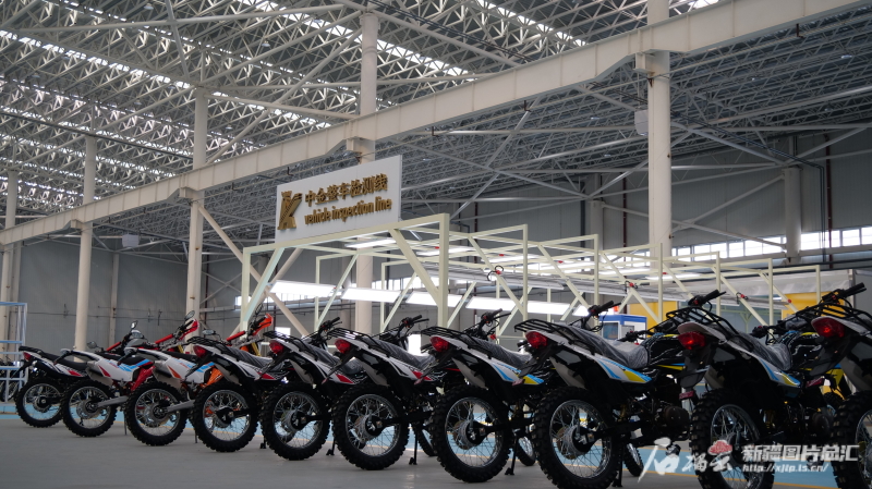 1月27日,中国(新疆)自由贸易试验区霍尔果斯片区,刚刚下线等待检测的摩托车(资料图)。永程帆摄