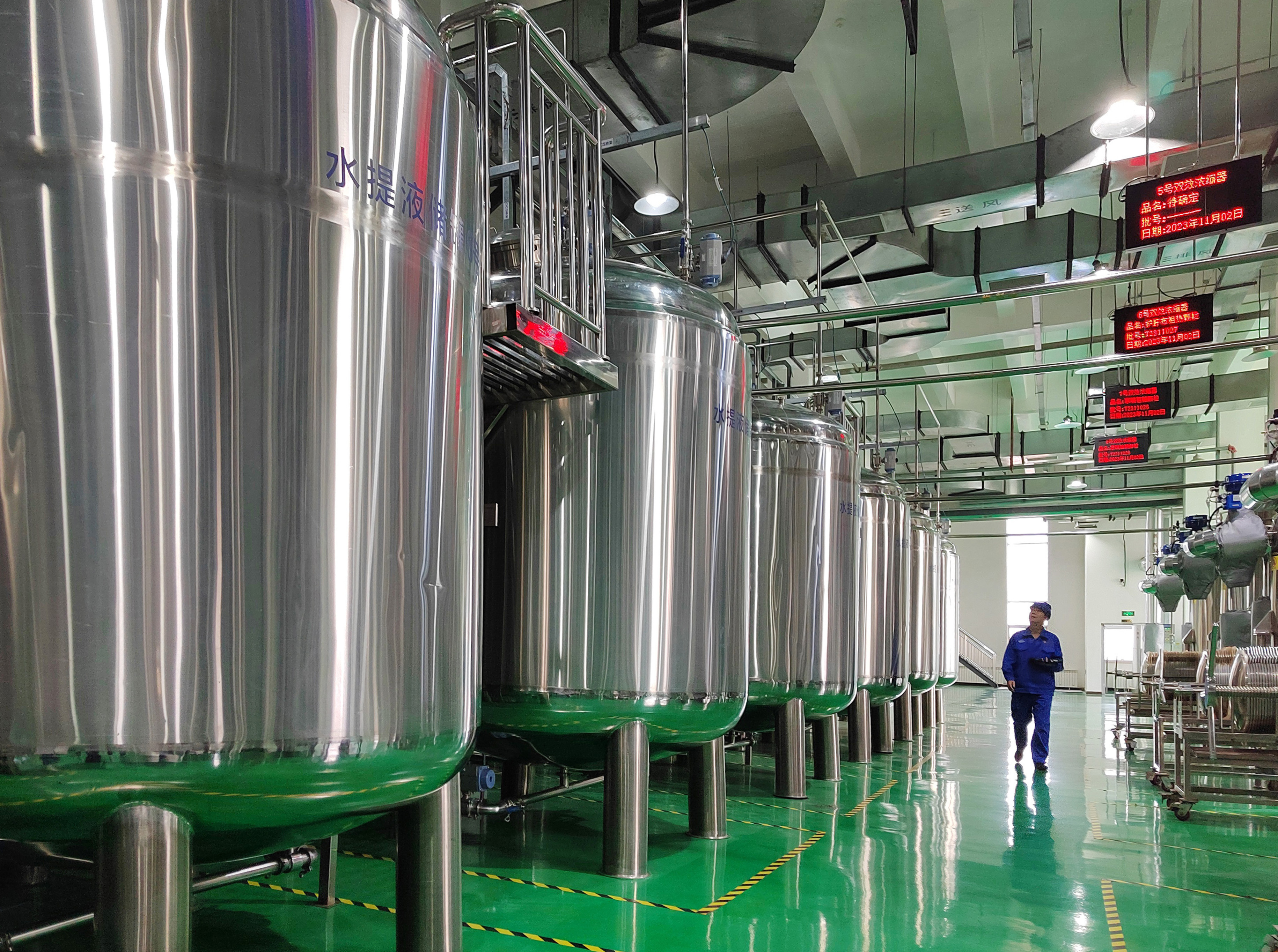 2023年11月2日,新疆维吾尔药业有限责任公司工作人员在智能提取车间检查设备运行情况。据了解,该公司是首家将中药民族药规模化销往中亚国家的中国制药企业(资料图片)。天山网-新疆日报记者 邹懿摄