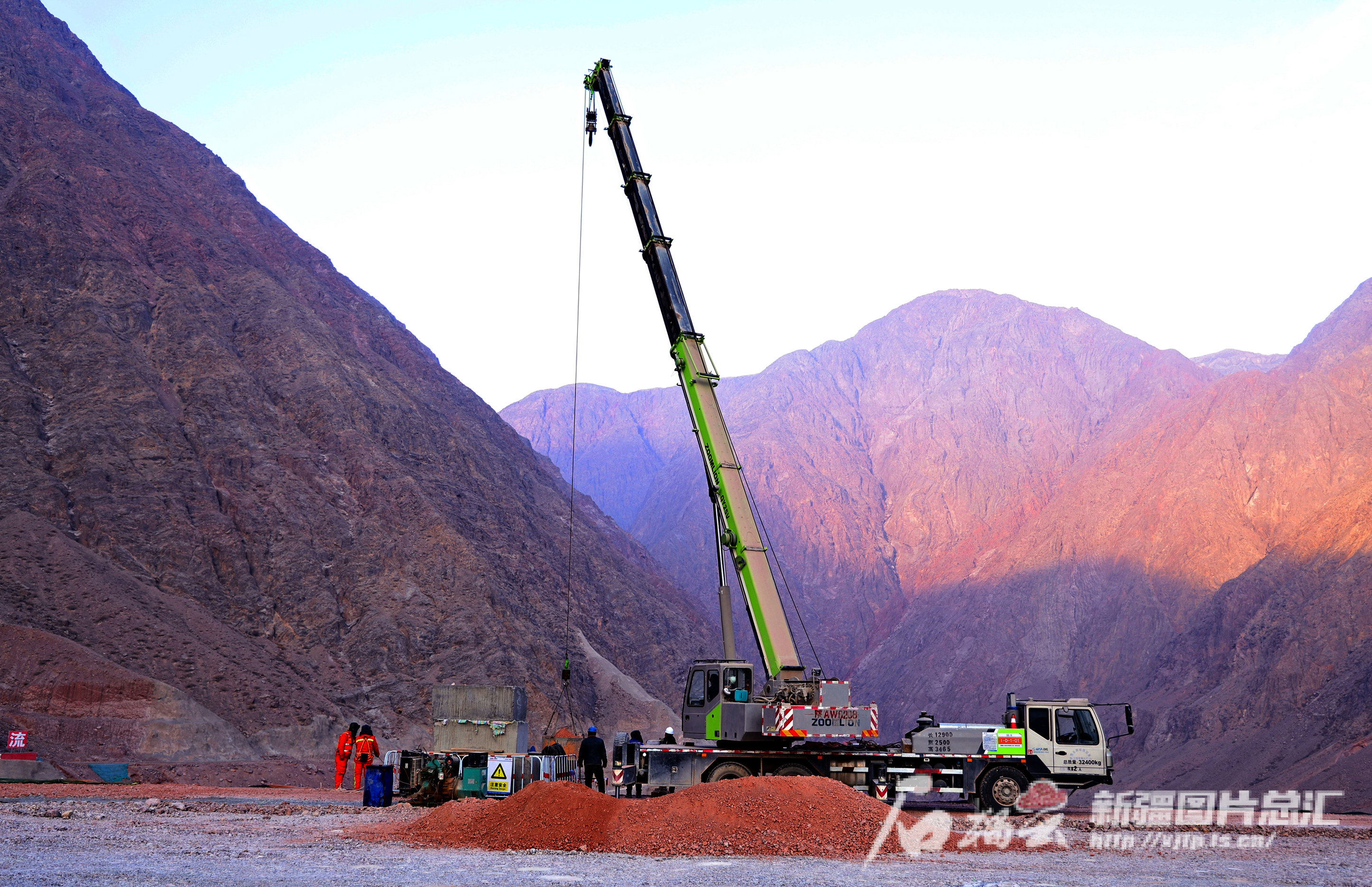 1月10日,施工人员在新疆大石峡水利枢纽工程建设现场作业。鲁提普拉·木塔力甫 摄