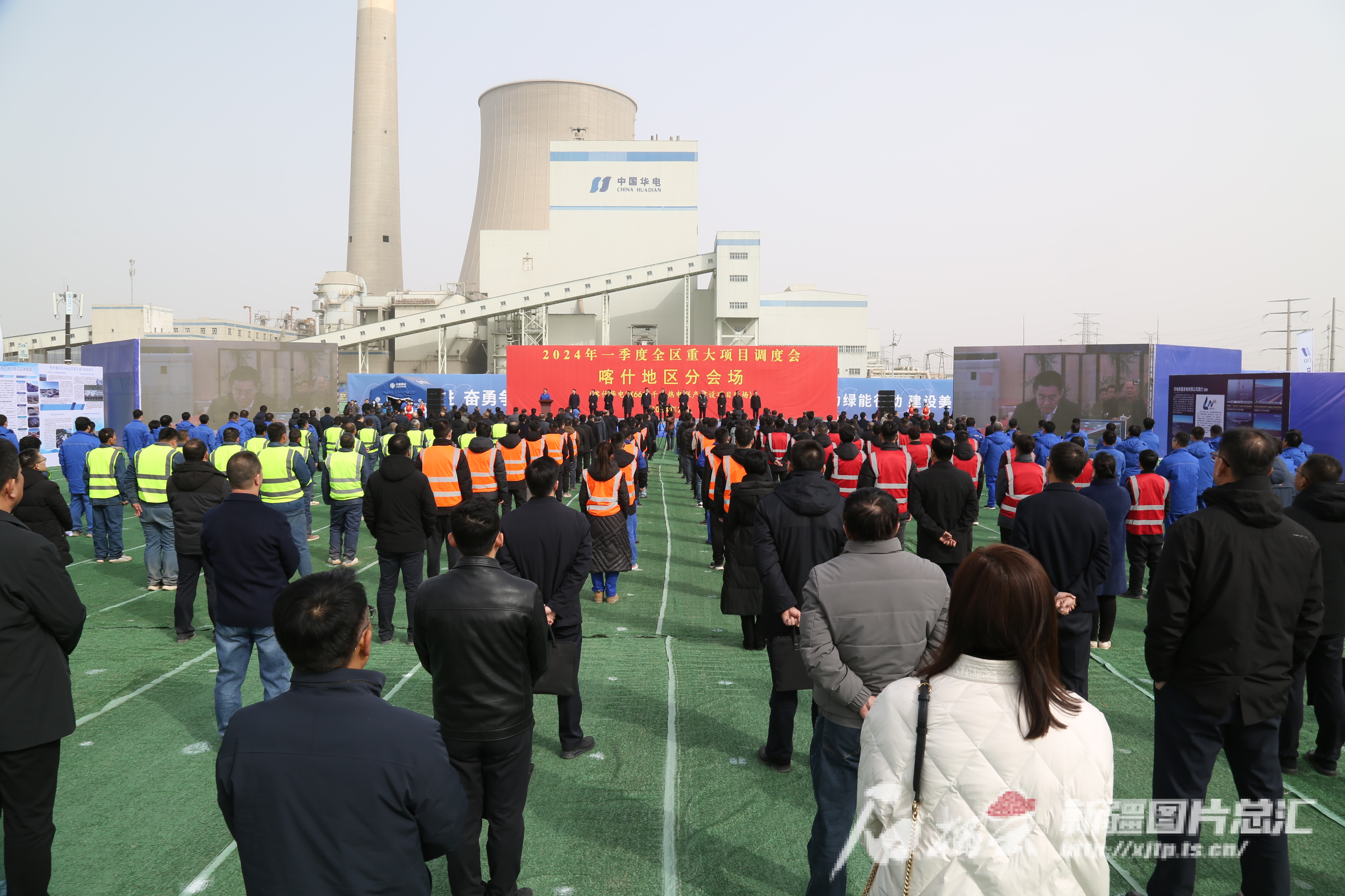 2月26日,在2024年一季度全区重大项目调度会喀什地区分会场,喀什华电2*66万千瓦热电联产项目开工。陈昭淋 摄