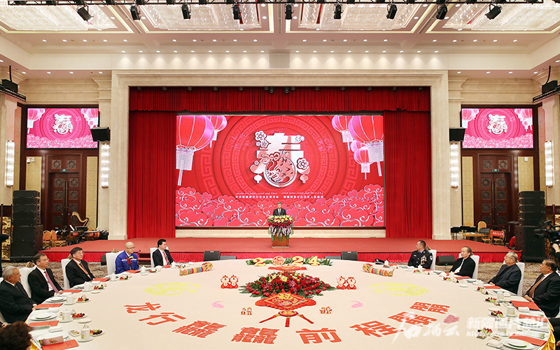 2月7日,自治区党委和政府举行2024年春节团拜会。全区各族各界代表欢聚一堂、共庆佳节、喜迎新春。自治区党委书记马兴瑞致辞。天山网-新疆日报记者 崔志坚摄