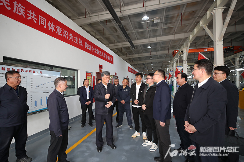 3月30日,自治区党委书记马兴瑞在新疆皖疆汽车有限公司汽车组装车间,了解企业运行、市场销售、吸纳就业等情况。天山网-新疆日报记者 崔志坚摄