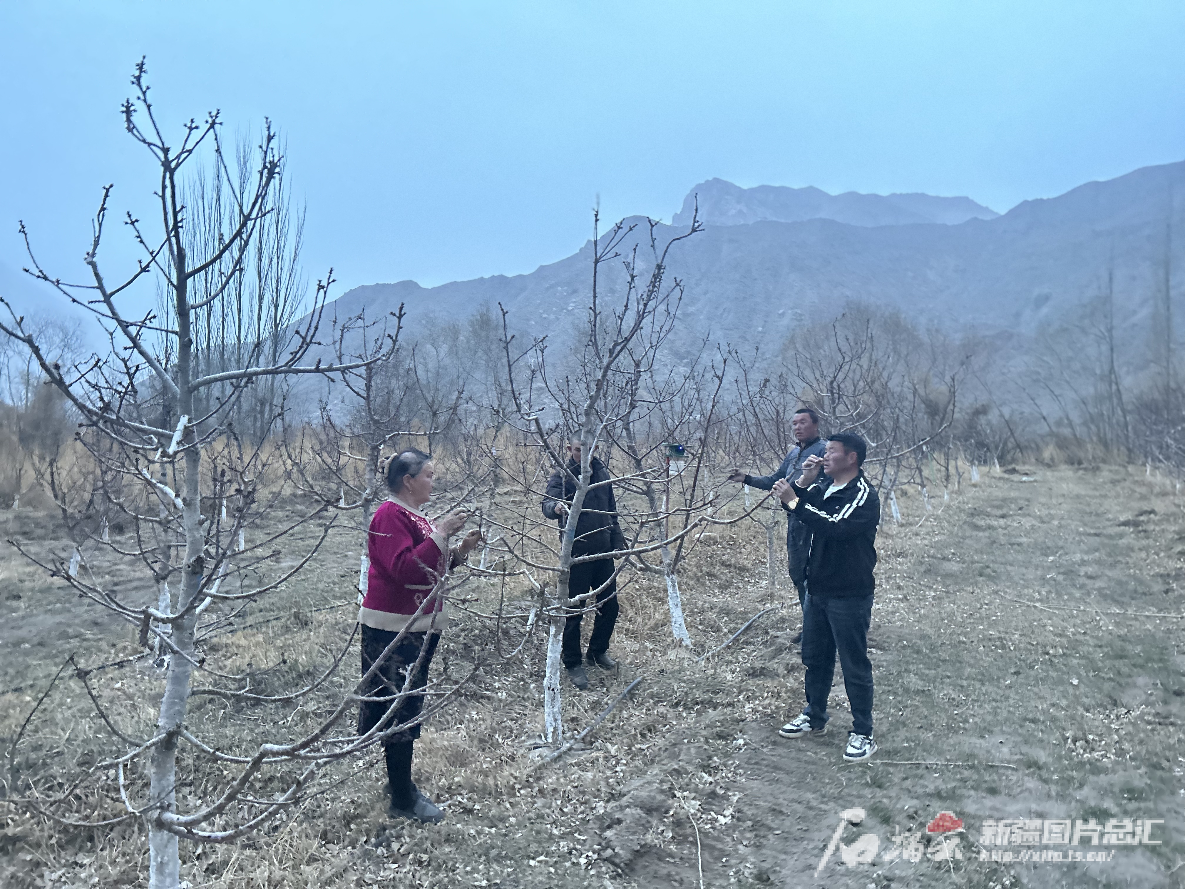 4月6日,在平均海拔2300米左右的乌恰县巴音库鲁提镇巴音库鲁提村,村民正在管理樱桃树。王春光 摄