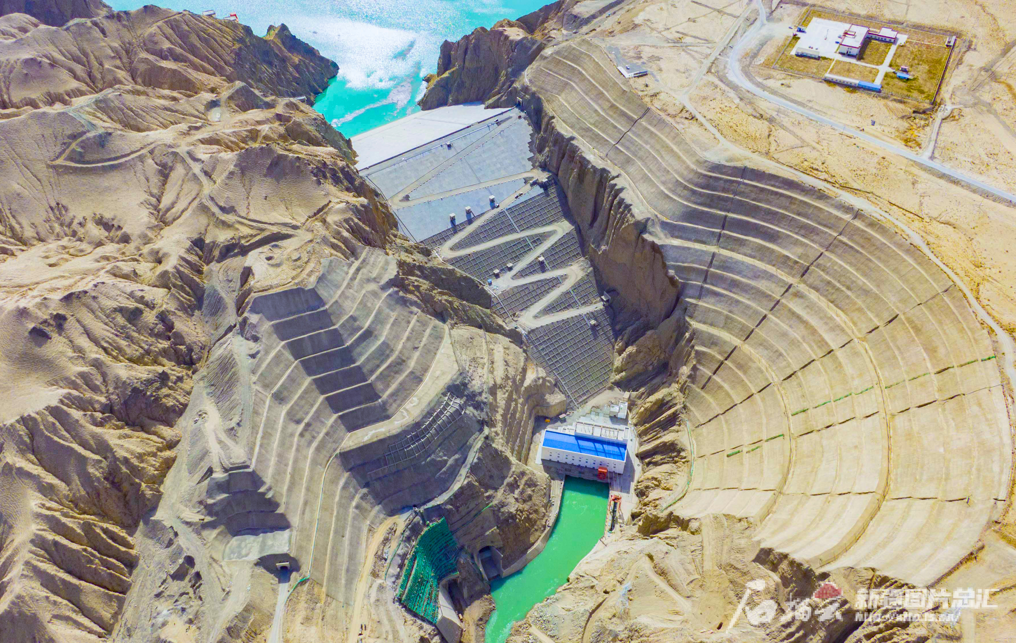 位于且末县境内的大石门水利枢纽正源源不断向下游输水(3月30日无人拍摄)。大石门水利枢纽工程是车尔臣河流域规划中的一项重点控制性枢纽工程,自2021年9月下闸蓄水以来,已累计向下游供水32.1189亿立方米。苏鑫 摄