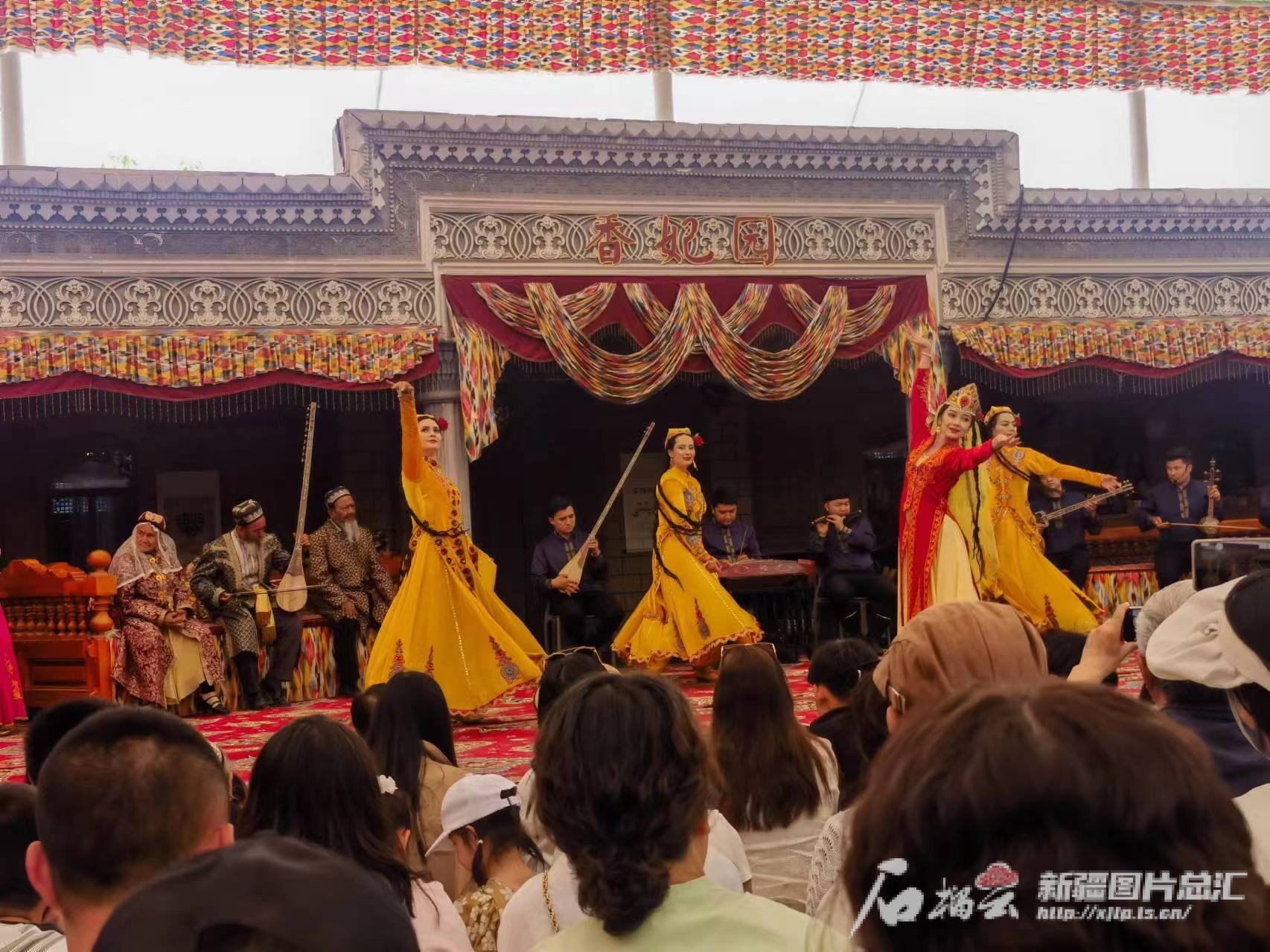 5月4日中午,香妃园景区为远道而来的游客们送上迎宾歌舞。袁媛摄