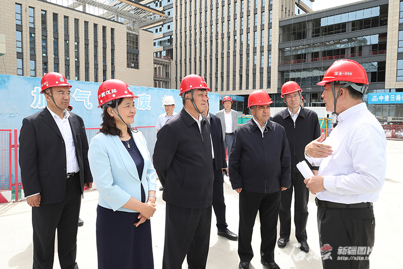马兴瑞、艾尔肯·吐尼亚孜等来到项目建设现场,听取医院建设进展介绍,同中国工程院院士韩德民和有关负责同志深入交流,并走进建设中的门诊楼、办公楼等实地察看,详细了解项目进展,就建设中遇到的困难问题,现场协调推动解决。