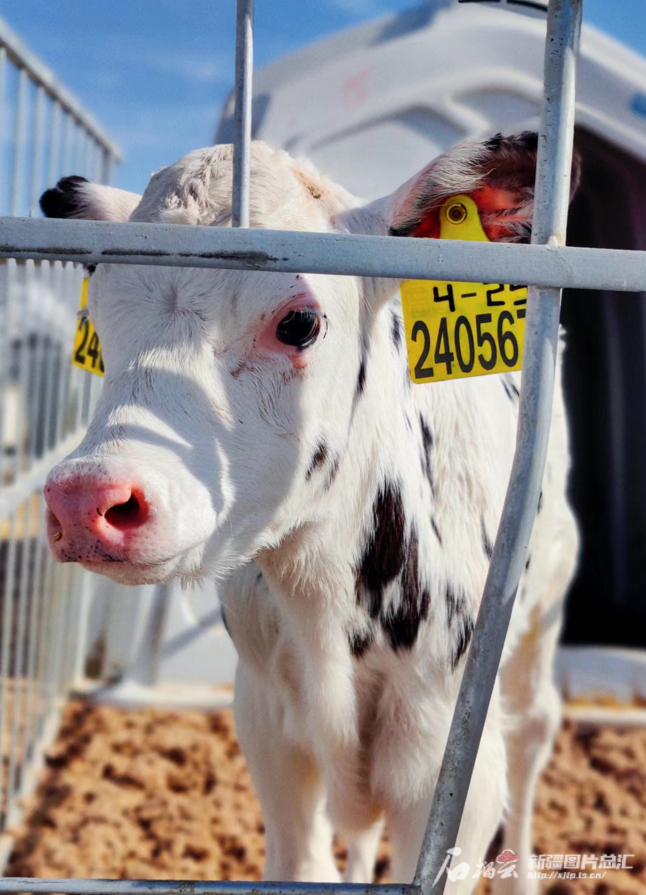 位于昌吉市阿什里哈萨克族乡的昌吉市现代畜牧产业园内现代牧业(昌吉)有限公司养殖场,双耳佩戴电子耳牌的小牛犊。胡雅宁 摄