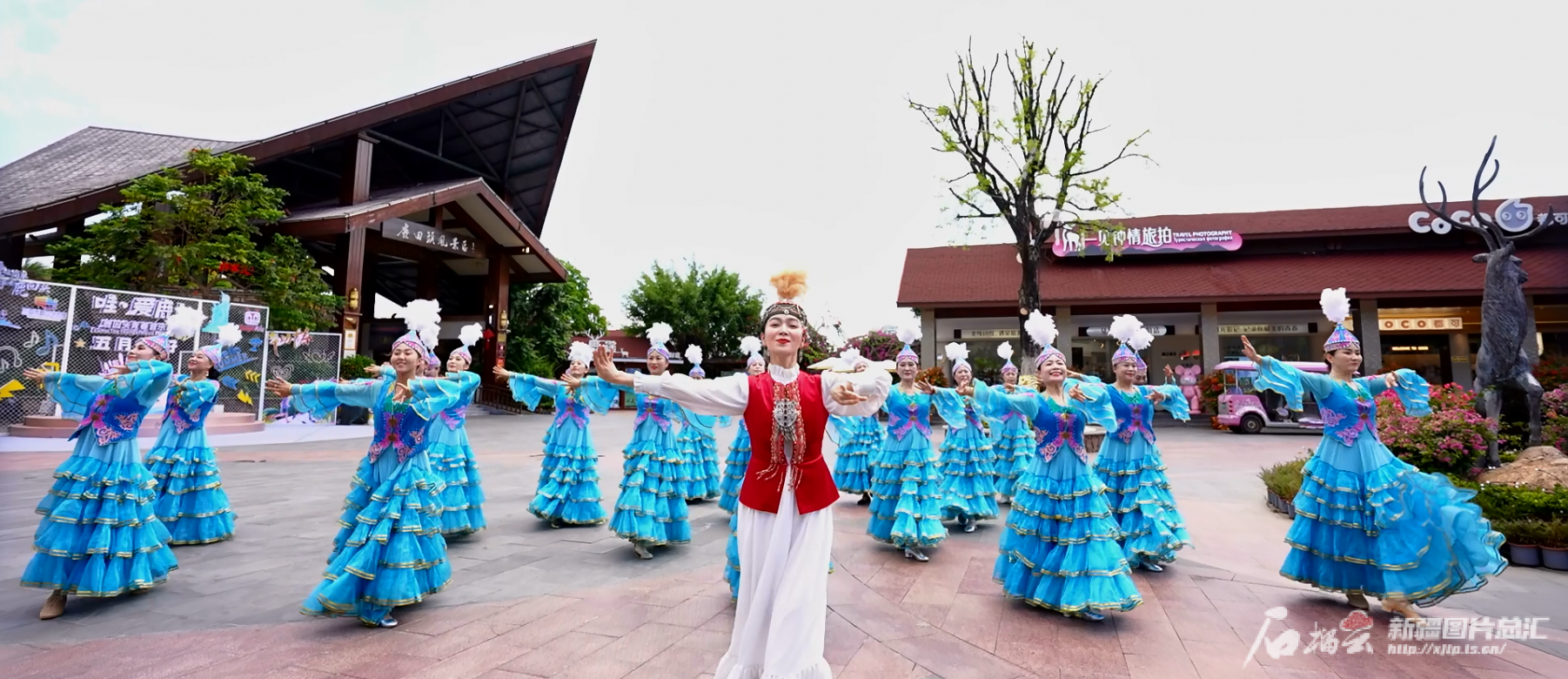 2024年5月,新疆文化馆“春雨工程”—文化和旅游志愿服务边疆行“一起来跳新疆舞”活动走进海南三亚。新疆文化馆供图