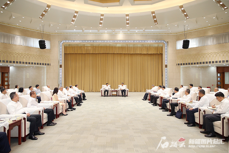 8月2日,自治区党委书记马兴瑞、自治区主席艾尔肯·吐尼亚孜在乌鲁木齐会见台商台企新疆行参访团。