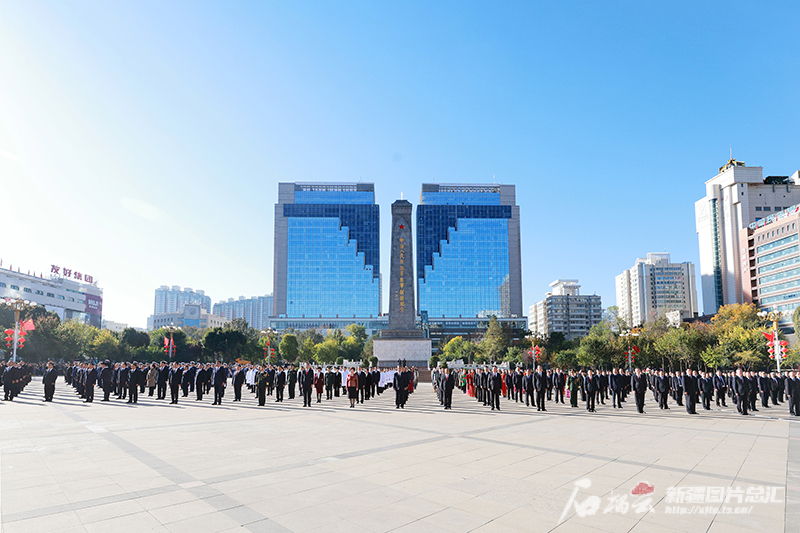 马兴瑞、艾尔肯·吐尼亚孜等领导,与各族各界代表一同参加升国旗仪式。石榴云/新疆日报记者 崔志坚摄