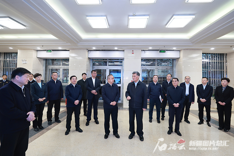 12月3日,自治区党委书记马兴瑞、自治区主席艾尔肯·吐尼亚孜在自治区市场监督管理局听取工作介绍,深入了解全区市场监督管理系统深化改革、保障产品质量安全、服务经营主体等做法和成效。石榴云/新疆日报记者 崔志坚摄