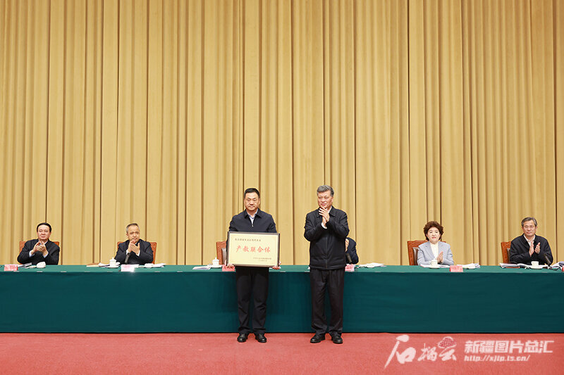 12月17日,自治区党委书记、兵团党委第一书记、第一政委马兴瑞为新疆首个国家级市域产教联合体——昌吉国家农高区现代农业产教联合体授牌。天山网-新疆日报记者 崔志坚摄