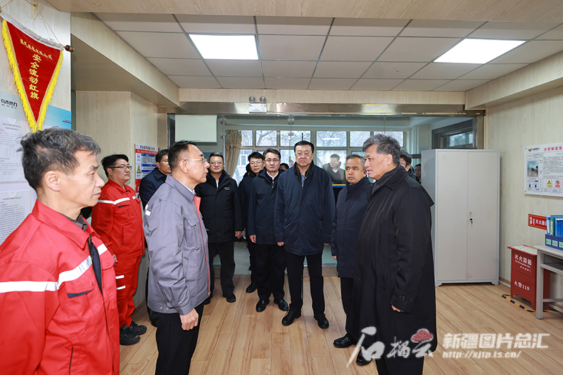 12月18日,自治区党委书记马兴瑞、自治区主席艾尔肯·吐尼亚孜在乌鲁木齐热力(集团)有限公司,察看设备运行情况,听取供热工作介绍。石榴云/新疆日报记者 崔志坚摄