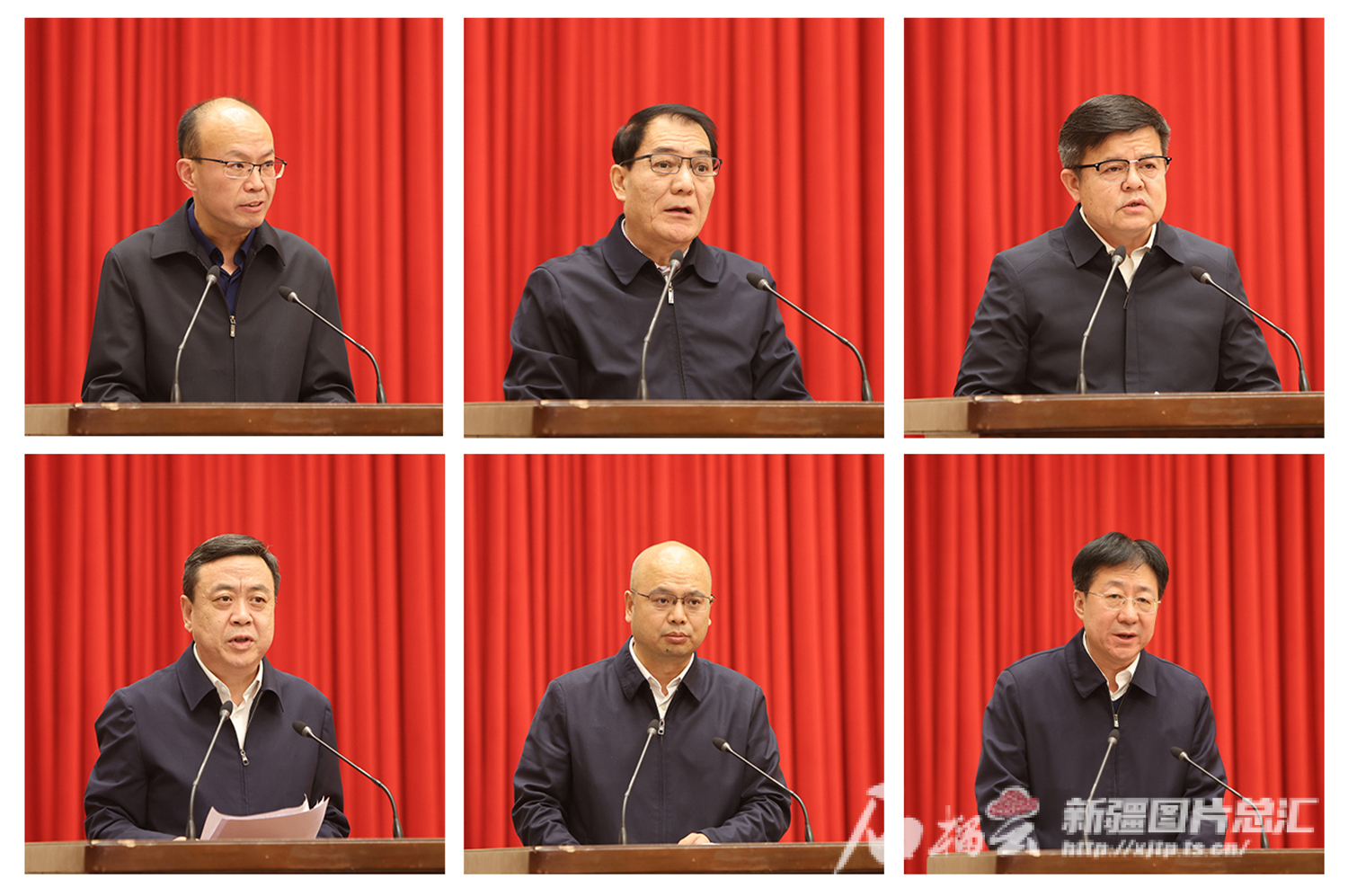 会上,自治区党委编办、自治区市场监督管理局、自治区团委、乌鲁木齐市、博尔塔拉蒙古自治州、阿克苏地区相关负责人依次发言(从左到右、从上到下)。天山网-新疆日报记者 谢龙摄
