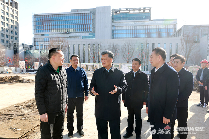 2月25日,自治区党委书记马兴瑞在霍尔果斯市营利性服务业总部经济大楼,向相关负责人询问企业落地、产业发展进展情况。石榴云/新疆日报记者 崔志坚摄