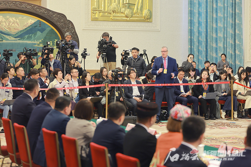 欧洲时报、中央广播电视总台、中阿卫视、埃及中国周报、中国日报、凤凰卫视、澎湃新闻、光明日报等媒体记者先后提问,就新疆高水平开放、科技发展、应对美国制裁、南疆巩固脱贫攻坚成果和乡村全面振兴、“十大产业集群”建设、文旅产业发展等了解相关情况。新疆代表团代表积极应答,全面介绍工作成果,热情邀请中外记者到新疆采访交流。在讲述新疆开放工作时,有关代表说,坚持开放战略不动摇,这是新疆的历史使命,更是由新疆独特优势所决定的,“风光无限好,正是在新疆”。在介绍新疆科技创新情况后,有关代表“喊话”海内外科技界有志之士:“孔雀东南飞固然有其风景,雄鹰西北行亦有别样风采。”在回应“如何看待中国企业因‘强迫劳动’被美国列入制裁名单”时,有关代表严肃指出,这于实不符、于理不合、于法无据,我们坚决反对!一些中国企业已经依法起诉了一些长期散布新疆存在所谓“强迫劳动”谎言谬论的组织和机构。我们鼓励和支持更多企业,拿起法律武器捍卫合法权益。