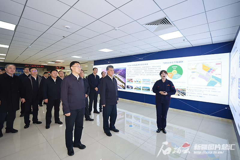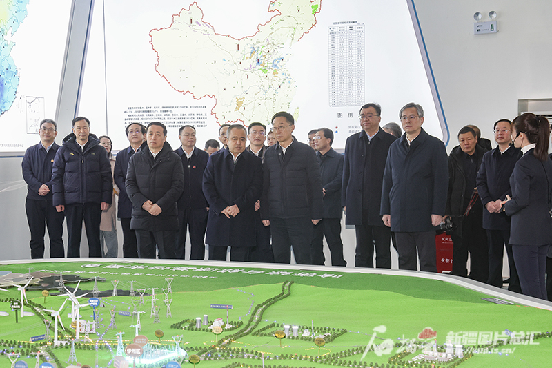 3月16日,河南省委书记、省人大常委会主任刘宁,自治区党委副书记、自治区主席艾尔肯·吐尼亚孜在国家可再生能源信息管理中心哈密分中心,调研哈密能源产业发展成效。石榴云/新疆日报记者 谢龙摄