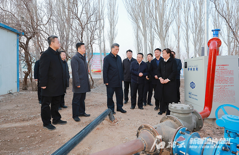 3月17日,自治区党委书记马兴瑞来到伊州区陶家宫镇幸福村,实地了解管水用水和水利工程建设情况。石榴云/新疆日报记者 崔志坚摄