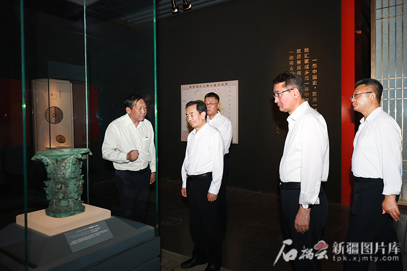 7月3日,自治区党委书记、兵团党委第一书记陈小江在和田博物馆,察看展览展陈,详细了解和田地区历史文化、民族团结融合等情况。石榴云/新疆日报记者 崔志坚摄