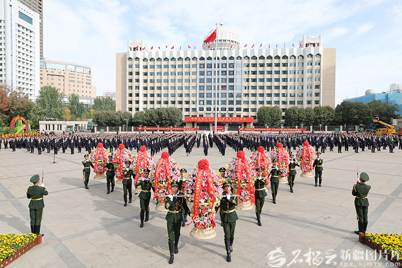 9月30日,烈士纪念日向人民英雄敬献花篮仪式在乌鲁木齐人民广场举行。石榴云/新疆日报记者 崔志坚摄