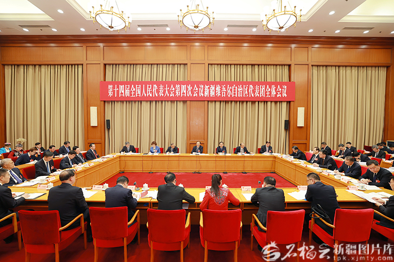 3月5日下午,参加十四届全国人大四次会议的新疆代表团举行全体会议,审议政府工作报告。天山网-新疆日报记者 崔志坚摄