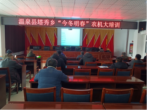 1月13日下午,温泉县农业农村局行政执法大队胡新泉和农业农村机械化发展中心哈力别克一行4人来我乡对各村农业机械人员开展农机惠农政策暨农机安全生产宣传培训,参加农机培训人员20余人。