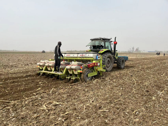 温泉县塔秀乡结合实际,积极推广土地保护性耕作,采取多种措施,加大力度推广、宣传、落实免耕播种技术。进一步改善和修复全乡农业生态环境,促进农业节本增效,绿色可持续发展。4月21日,在塔秀乡楚布勒达村,乡村干部、农业技术人员现场指导机械调试,村民们正忙着玉米免耕播种施肥作业。