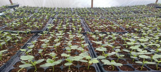 呼和托哈种畜场道特尔布呼队石广儒的暖棚内春意盎然,随处可见一座座的育苗塑料大棚,虽然棚外寒气逼人,棚内却暖意融融,一个个育苗盘整齐地排满了大棚,盘内绿油油的瓜苗生机盎然,为保证今年增产增收,种植户石广儒早早地就开始了大田西瓜的育苗工作,目前瓜苗茁壮成长,长势喜人,为今年的西瓜高产和优质打下了坚实的基础,石广儒坚持市场需求,积极探索增收渠道,种植适宜本地气候的沙甜优质西瓜,经过10天左右时间的培育,就可移植到大田地栽种了。