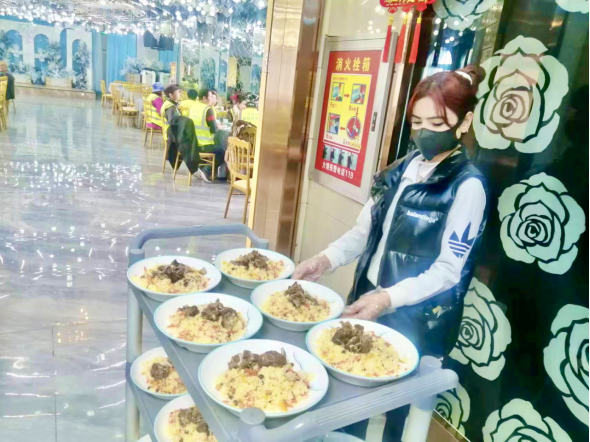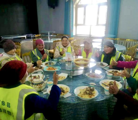 “我们平时天气冷了热了,我们经常到旺福楼餐厅来坐一坐,喝点茶喝点水,老板对我们也很好,今天商家免费请环卫工人吃大餐,今天的饭菜不仅暖胃更是暖心啊!非常感谢对我们的关心。”环卫工人巴.乌娅说。