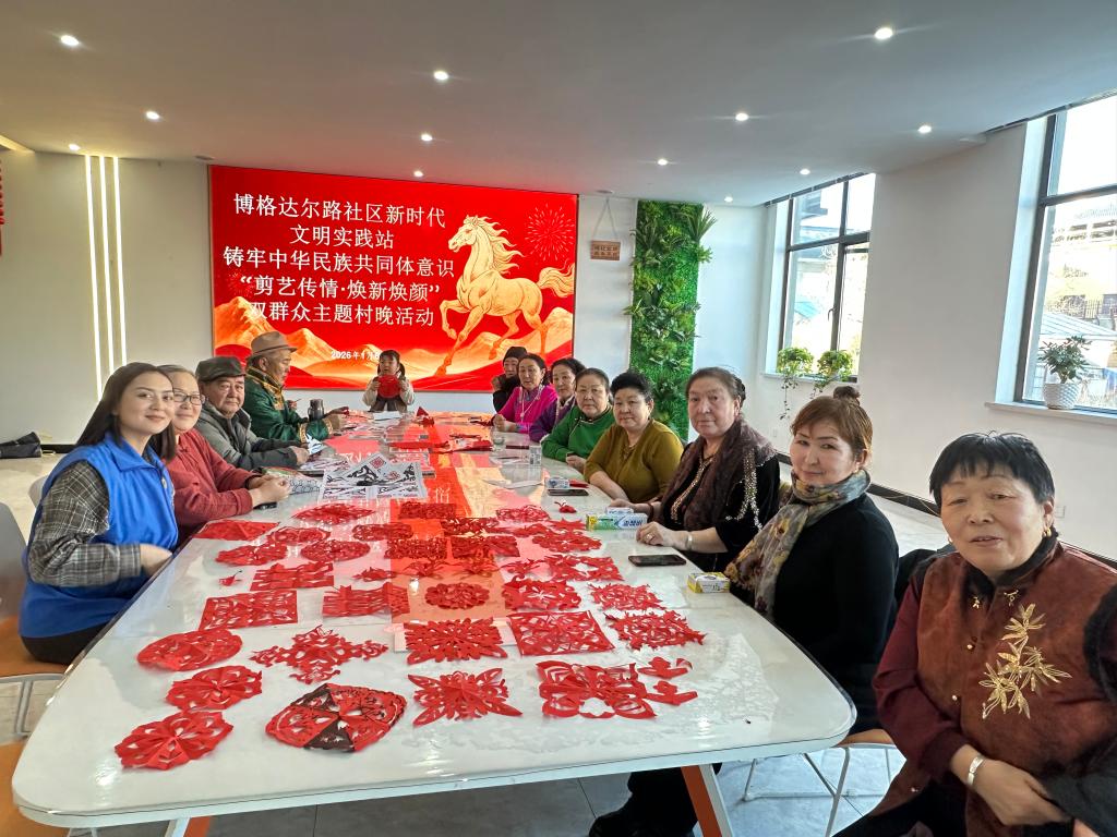 博格达尔路社区“剪艺传情·焕新焕颜”双主题活动为传承非遗文化,践行便民服务理念,博格达尔路社区于2026年1月6日成功举办铸牢中华民族共同体意识“剪艺传情·焕新焕颜”剪纸+义剪双主题群众村晚活动。活动得到了居民的积极响应与广泛好评。