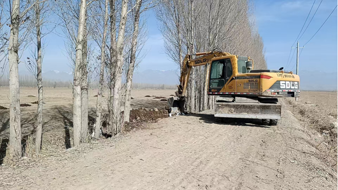 灌溉渠道是农业生产的“生命线”,长期运行易出现淤泥堆积、杂草丛生、杂物堵塞等问题,直接影响灌溉效率。为确保清理工作高效有序推进,镇农业发展服务中心提前谋划、周密部署,精心调配挖掘机、装载机、运输车辆等专业机械设备,创新采用机械与人工联合作业模式,高效推进清渠工作。作业过程中,先由大型机械对渠道内厚重淤泥、大型障碍物进行集中清理,再组织生态护林员对机械难以触及的边角、死角残余杂物、杂草开展精细化人工清理,做到全面彻底、不留盲区。同时,工作人员对排查发现的渠道坍塌、破损部位,第一时间进行修复加固,进一步稳固渠体结构,提升渠道输水安全性与耐用性。