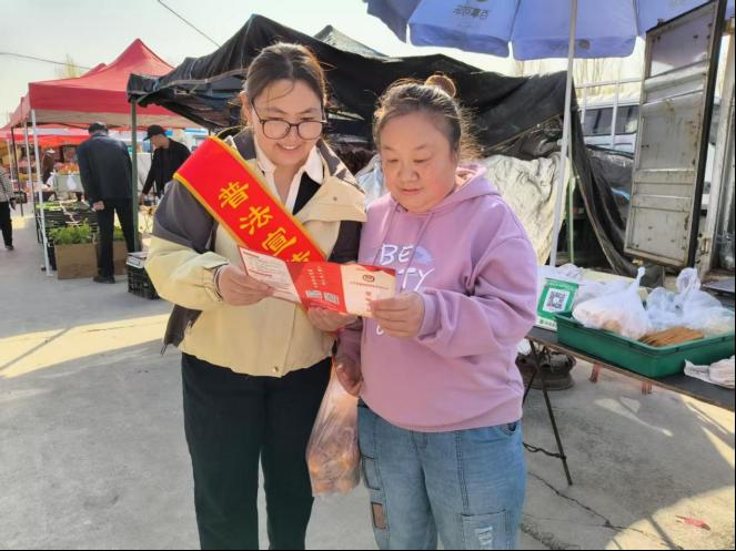 同时。呼和托哈种畜场借助赶集日人流密集优势,县司法局联合呼和托哈种畜场综治中心、司法所、农商银行,在呼和托哈种畜场集市设立宣传台,悬挂主题横幅,发放国家安全、民法典、反诈等宣传资料300 余份,工作人员用通俗语言现场答疑解惑。同时,场相关驻场电子屏全天滚动播放国家安全宣传标语,让群众在赶集、办事过程中随时学习安全知识。